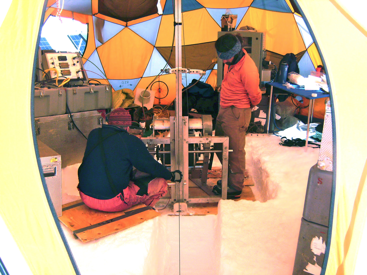 Looking down into a 10-meter ice core sample hole