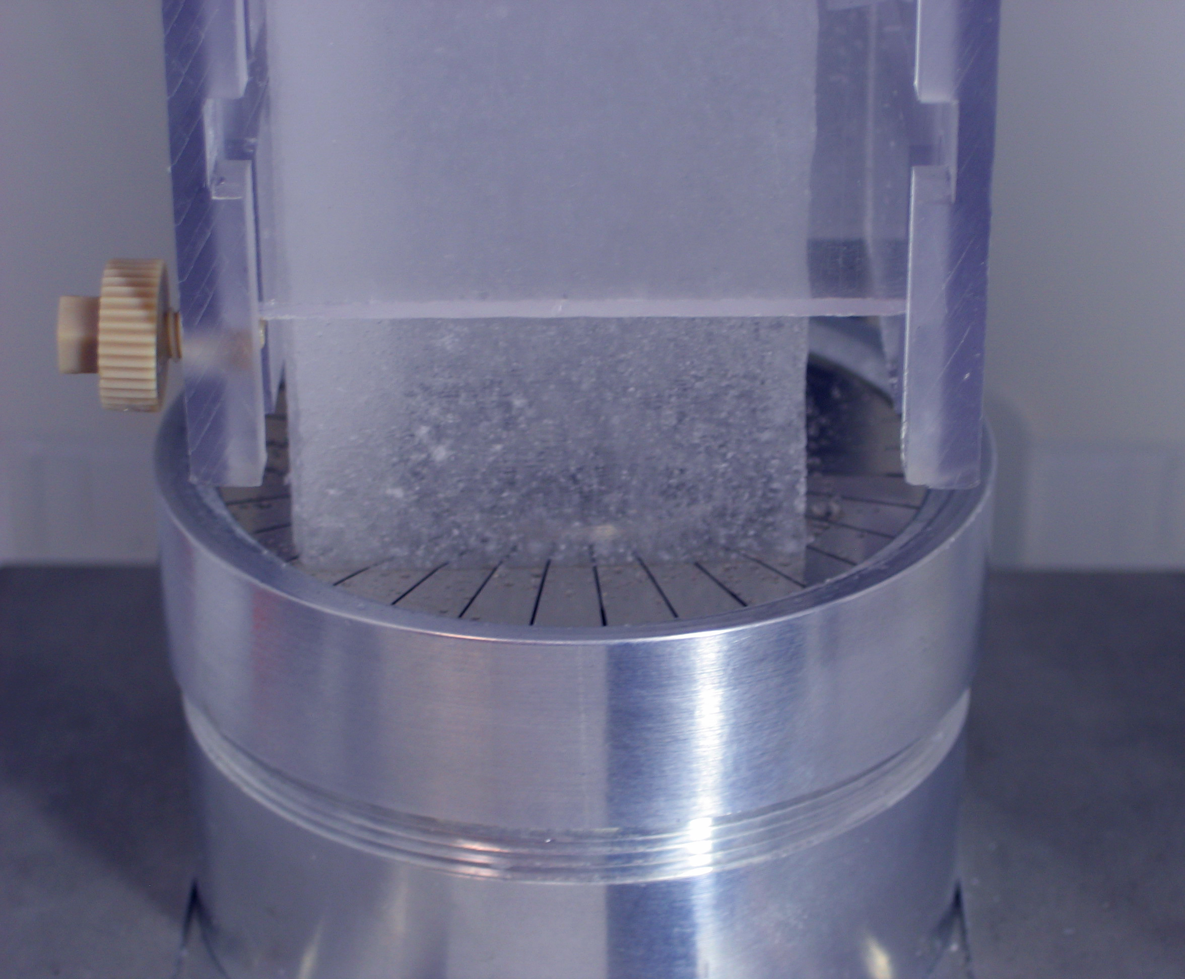 After scientists procure the cores, they slice them up into various portions each allotted to a specific analytical or archival purpose. As the scientists are dividing the cores for analysis, they don special clean suits to prevent the core samples from becoming contaminated. Once the samples have been prepared, the scientists run a variety of physical and chemical analyses on the cores. Some of these ice procedures are consumptive, meaning their analysis requires destruction of the ice, while others have no effect on the ice. Scientists study the gas composition of the bubbles in the ice by crushing a sample of the core in a vacuum. Overall, most of the core is reserved for archival purposes, preserving a long record of Earth history for future research.