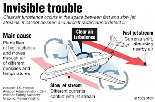 Another source of turbulence is horizontal wind shear. This commonly occurs along the boundaries of the jet stream or jet streaks (smaller regions with winds higher than that of a typical jet stream). The jet stream is like a river of strong winds in a sea of weaker winds. For example, say the jet stream has 80 knot winds, and the surrounding air is 30 knots. At the edge of this changeover, eddies form that can create turbulence.